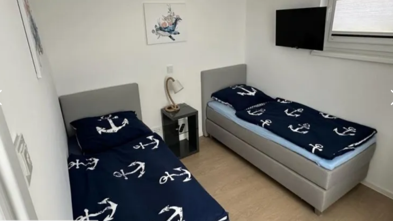 Das Wohnzimmer in unserem Ferienhaus ist der perfekte Ort, um sich nach einem aufregenden Tag zu entspannen. Es ist großzügig geschnitten und bietet einen großen Fernseher, der ideal für gemütliche Filmabende ist. Zudem steht eine komfortable Schlafcouch zur Verfügung, die Platz für einen fünften Gast bietet. So können Sie und Ihre Familie oder Freunde die gemeinsame Zeit in vollen Zügen genießen, egal ob beim Spielen, Fernsehen oder einfach nur beim Zusammensitzen.